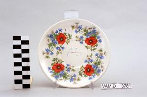 - NOTIZIE STORICO CRITICHE Il piattino in esame, appartenente ad un servizio da thè (num inv. 3781...3807), è realizzato nella forma denominata "C 205" progettata da Antonia Campi e pubblicata tra i disegni tecnici della "S.C.I." del 1953 (cfr. E. Biffi Gentili, 1998). La decorazione floreale, resa con morbidi effetti di chiaroscuro e con una policromia ricca e sfumata realizzata con la tecnica della decalcomania soprasmalto, richiama quei decori naturalistici in voga all'inizio del secolo. Il medesimo decoro è presente su un servizio da caffè (num. inv. 3787...3792) e su un vasetto (num. inv. 3150) conservati presso il Midec. Il piattino fa parte di una donazione di privati al Museo.