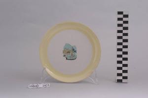 - NOTIZIE STORICO CRITICHE Il piatto fa parte di un servizio (num. inv. 3393-3405) prodotto dalla "S.C.I" e utilizzato come esercitazione per lo studio dei colori e per l'applicazione dello smalto dalla Scuola per Ceramisti di Laveno, istituita nel 1950 e chiusa nel 1963. Gli insegnamenti avevano luogo nei locali della Società Ceramica Italiana ed erano gestiti dalla società stessa. Sotto il piede compare la firma dell'allievo che ne eseguì il motivo ornamentale (Zelia). Alcuni soggetti del decoro a carattere lacustre, realizzato con la tecnica della decalcomania soprasmalto, li ritroviamo in un servizio di piatti, conservato presso il Midec (num. inv. 1341-1346, 1348), realizzato dalla "S.C.I." in versione monocroma. Il manufatto, dipinto a mano, fa parte di una donazione di privati al Museo.