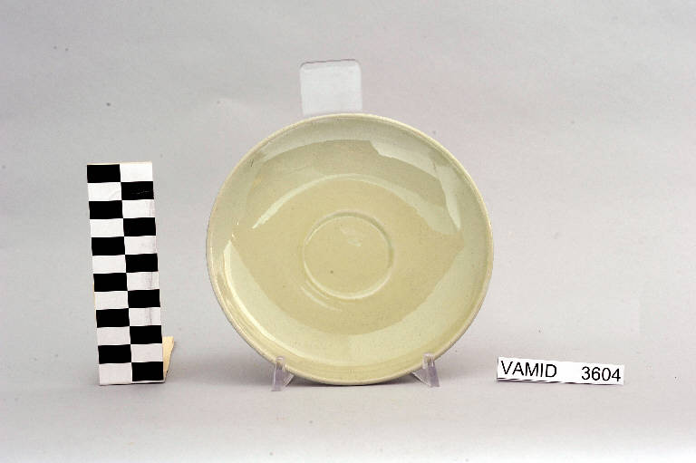 - NOTIZIE STORICO CRITICHE L'oggetto in esame, prodotto serialmente anche in altri colori, appartiene ad un servizio da thè (num. inv. 3604...3631). Il design semplice ed essenziale, che sembra vagamente ricordare la pulizia della forma "Pomezia", indica una piena assimilazione del funzionalismo e quindi una datazione ormai avanzata nel Novecento. Si tratta di una produzione, probabilmente influenzata dai progetti dell'Andlovitz, riferibile alla metà del secolo. Nel Midec è conservato un servizio da thè identico nella variante color azzurro (num. inv. 3608...3621). Il piattino fa parte di una donazione di privati al Museo.