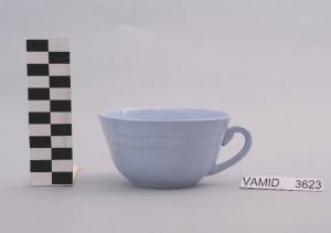- NOTIZIE STORICO CRITICHE La tazza in esame, appartenente ad un servizio da thè (num. inv. 3617...3626), rientra in una tipologia di vasellame di gusto corrente. Il design sobrio ed elegante e il motivo ondulato a rilievo indicano una datazione alla prima metà del Novecento. La mancanza di caratteri stilistici particolari impedisce una definizione cronologica più circoscritta. L'oggetto fa parte di una donazione di privati al Museo. Nel Midec è conservato un servizio da thè (num. inv. 3746-3770) identico a quello in esame nella variante color bianco con bordi rifiniti da leggere profilature oro.