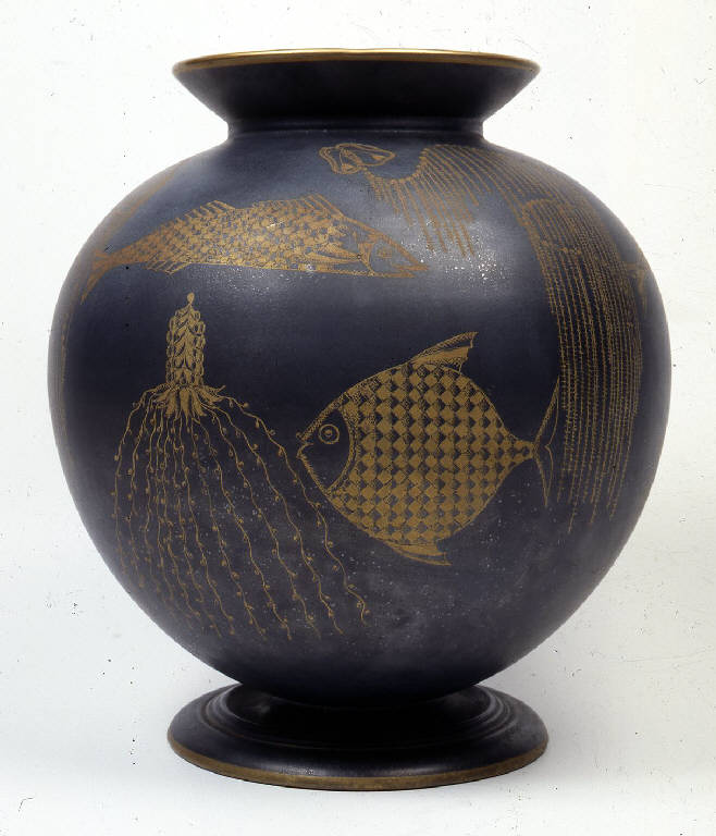 - NOTIZIE STORICO CRITICHE Il vaso fu creato per l'esposizione della "IV Triennale delle Arti Decorative e Industriali" di Monza del 1930 dove fu acquistato dalla fondazione Richard e donato alle Civiche Raccolte del Castello Sforzesco. \nSotto la base del vaso è presente la marca "Lavenia", con due monti e tre onde in oro, da inserire in quella vasta produzione di ceramiche create e nate sotto la direzione di Guido Andlovitz (1900-1971), per la Società Ceramica Italiana di Laveno.