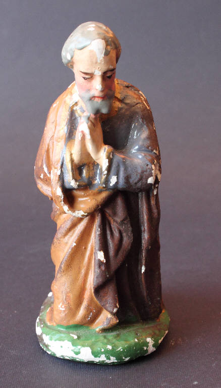 - NOTIZIE STORICO CRITICHE Presepio di piccole dimensioni realizzato a fine Ottocento su commissione di una famiglia benestante, tramandato di padre in figlio e utilizzato ogni Natale per allestire il presepio in casa. Si tratta di una vera e propria rarità poiché fu solo a partire dagli anni venti del Novecento che le botteghe artigiane cominciarono a produrre "in serie" statue in gesso di piccole dimensioni destinate all'allestimento di presepi domestici. Lo stato di conservazione non ottimale e la presenza di statue ridipinte con vernice più lucida o di figure dallo stile differente, ne confermano l'uso provato: ogni Natale le figurine rotte venivano rimpiazzate oppure venivano ridipinte quelle ormai rovinate.