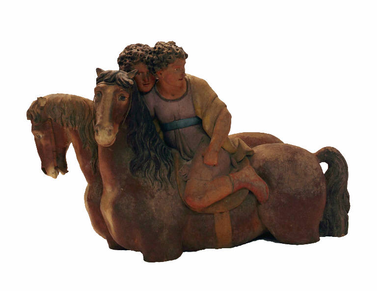 - NOTIZIE STORICO CRITICHE Gruppo scultoreo rappresentante due uomini a cavallo. E' interessante rilevare la grande qualità espressiva e plastica che caratterizza sia le figure umane sia i cavalli.\nGli animali sono rappresentati fino a mezzo busto.