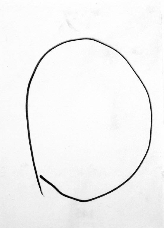 disegno a pennarello nero su carta bianca. Colore: bianco e nero. Soggetto: cerchio.
