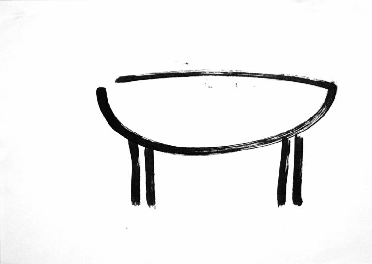 fotocopia di disegno originale a pennarello nero su carta bianca. Colore: bianco e nero. Soggetto: progetto di design, tavolo.