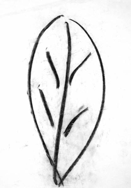 disegno a fusaggine su carta. Colore: bianco e nero. Soggetto: foglia.