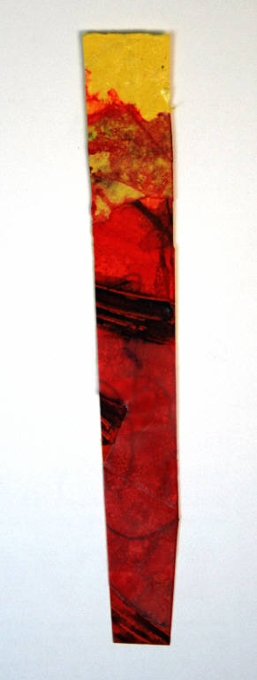 tecnica mista: plastica, cartoncino, smalti, acrilici e pittura a olio. Colore: giallo, rosso, viola. Soggetto: bozzetto di texture.