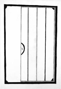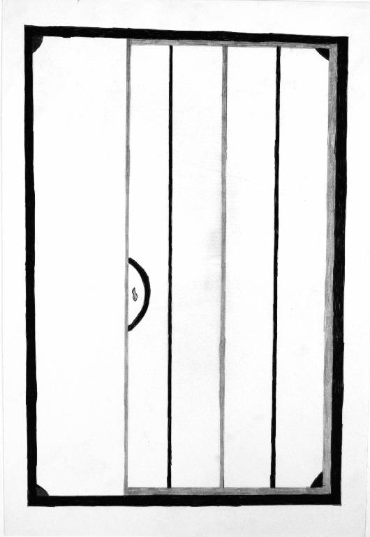 disegno a tecnica mista: penna biro e matita. Colore: nero, grigio e bianco. Soggetto: porta. Disegno firmato e datato: Caterina Caserta, 30/05/97.
