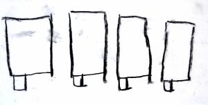 disegno a fusaggine su carta. Colore: nero e bianco. Soggetto: bandiere.