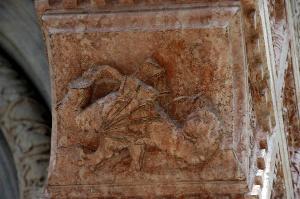 - NOTIZIE STORICO CRITICHE Il rilievo, come l'intera mensola, è stato realizzato dalla bottega di Giovanni da Campione tra il 1350 e il 1360 circa.\nL'opera è stata restaurata tra il 1999 e il 2000 (Buonincontri, 2005, p. 248).