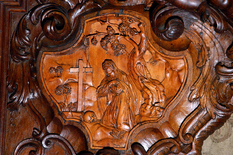 - NOTIZIE STORICO CRITICHE Il rilievo appartiene al confessionale scolpito da Andrea Fantoni tra il 1704 e il 1705 per il Duomo di Bergamo, su commissione del canonico Giovan Pietro Mazza.\nL'opera ha subito un delicato intervento di restauro nel 1999, a cura di Eugenio e Luciano Gritti del Consorzio Professionale Restauratori d'Arte (l'intervento è descritto in dettaglio in Curatola/ Gritti/ Zanchi, 2000, pp.44-53).