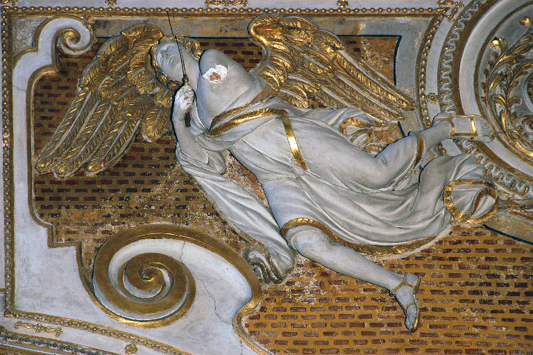 - NOTIZIE STORICO CRITICHE La vicenda della decorazione della Basilica di Santa Maria Maggiore è assai bene documentata dai pagamenti conservati nei libri contabili della Congregazione della Misericordia Maggiore, che permettono di seguire quasi ad annum le fasi del cantiere (Rampinelli, 2001; Spirirti, 2009): agli stucchi della navata centrale lavorarono, tra il 1675 e il 1679, Giovanni Angelo Sala e il figlio Gerolamo, artisti ticinesi d'origine, impegnati negli stessi anni in numerosi altri cantieri bergamaschi; valga per tutti l'impresa delle meravigliose sagrestie della Basilica di San Martino ad Alzano Lombardo (cfr. M. Olivari in "Le sagrestie di Alzano Lombardo nella Basilica di San Martino", Cinisello Balsamo 1994, pp. 19-22). Le grandi figure di angeli che ornano gli spazi sopra gli archi non sono esplicitamente citate nei documenti della Basilica, ma è assai probabile che siano state anch'esse eseguite nelle stesse date.