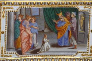 - NOTIZIE STORICO CRITICHE L'affresco è stato eseguito, con ogni probablità, da un decoratore specializzato attivo nella bottega di Francesco e Lorenzo Porta, che lavorano alla decorazione delle volte delle due campate della navata destra della Basilica tra il 1582 e il 1584 (Cortesi Bosco, in "I pittori bergamaschi...Il Seicento", vol. II, pp. 92-94, nota 5).
