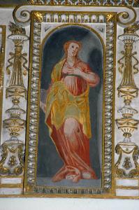 - NOTIZIE STORICO CRITICHE L'affresco è stato eseguito, con ogni probablità, da un decoratore specializzato attivo nella bottega di Francesco e Lorenzo Porta, che lavorano alla decorazione delle volte delle due campate della navata destra della Basilica tra il 1582 e il 1584 (Cortesi Bosco, in "I pittori bergamaschi...Il Seicento", vol. II, pp. 92-94, nota 5).