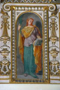 - NOTIZIE STORICO CRITICHE L'affresco è stato eseguito, con ogni probablità, da un decoratore specializzato attivo nella bottega di Francesco e Lorenzo Porta, che lavorano alla decorazione delle volte delle due campate della navata destra della Basilica tra il 1582 e il 1584 (Cortesi Bosco, in "I pittori bergamaschi...Il Seicento", vol. II, pp. 92-94, nota 5).