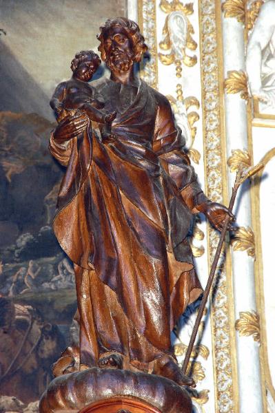 - NOTIZIE STORICO CRITICHE La statua, come l'intero complesso della bussola d'ingresso al transetto destro, fu realizzata dall'intagliatore bergamasco Giuseppe Alari verso il 1770 (Pinetti, 1931, p. 87; Zanchi, 2003, p. 387); è stata restaurata nel 1998 (cfr. relazione tecnica in data 13 maggio 1998, prot. 1821, cat. 5, clas. 6, fasc. 17, Archivio Congregazione Misericordia Maggiore, Bergamo).