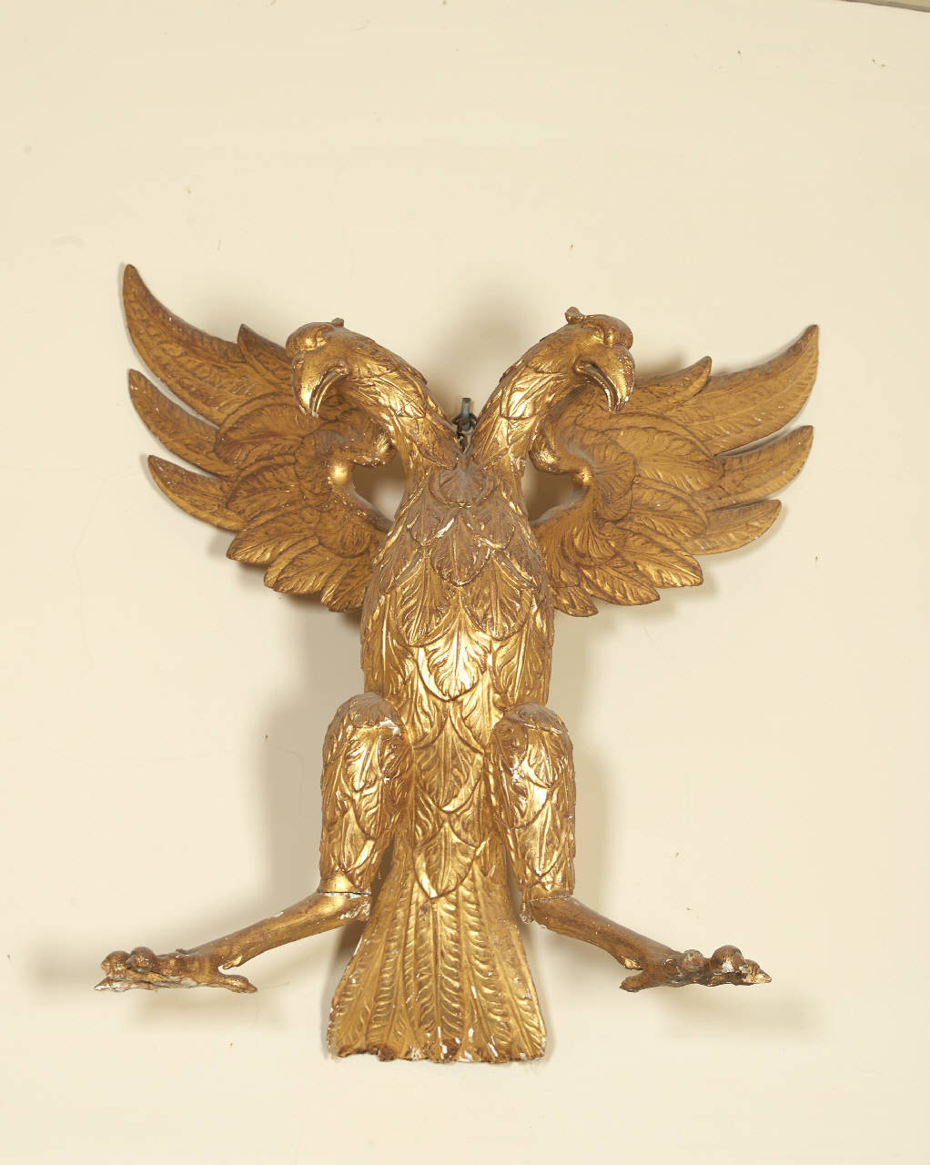 Aquila frontale, bicipite ad ali spiegate e zampe aperte verso l'esterno.
