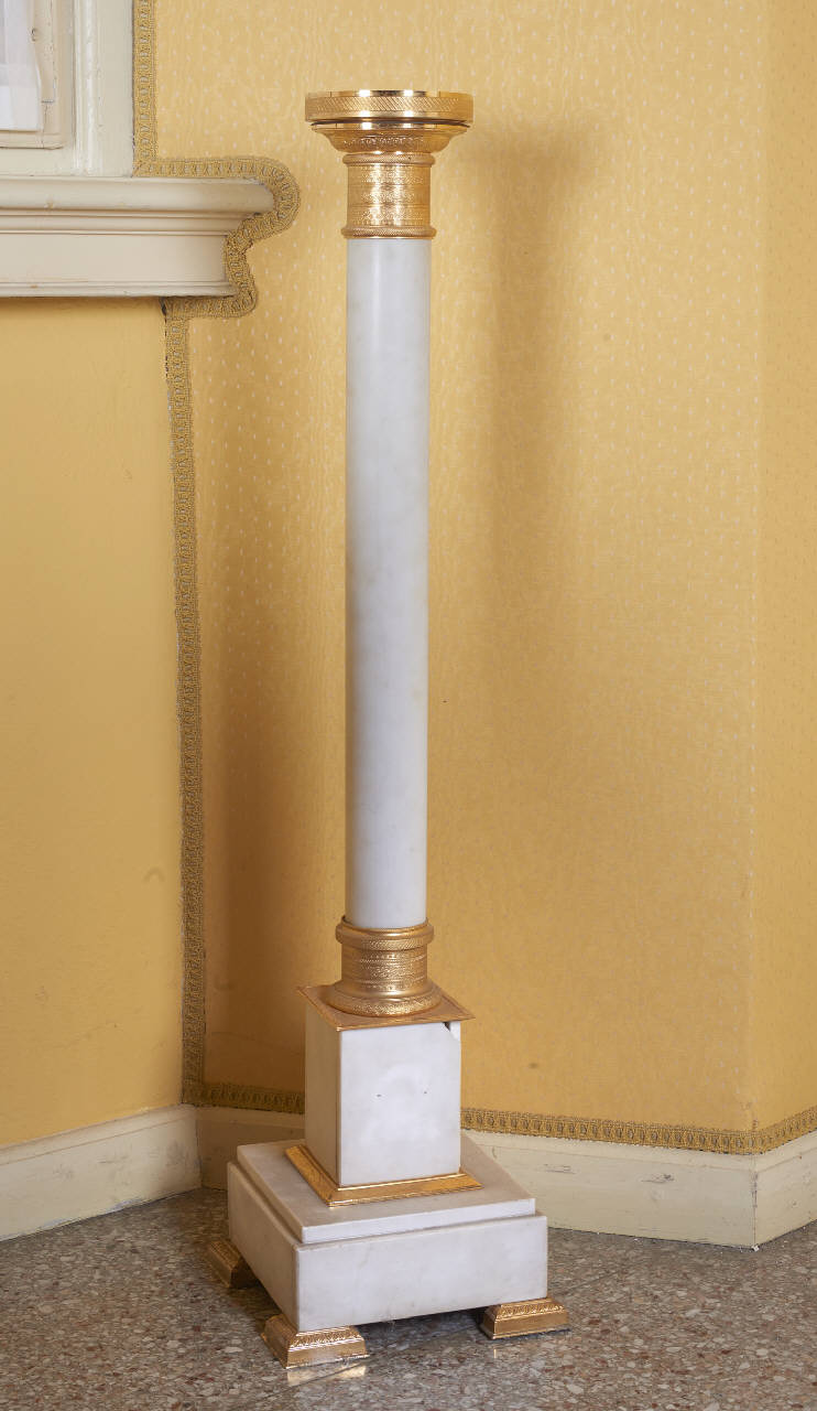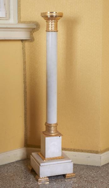 Sottile colonna a doppia base quadrata, con ornamenti dorati.
