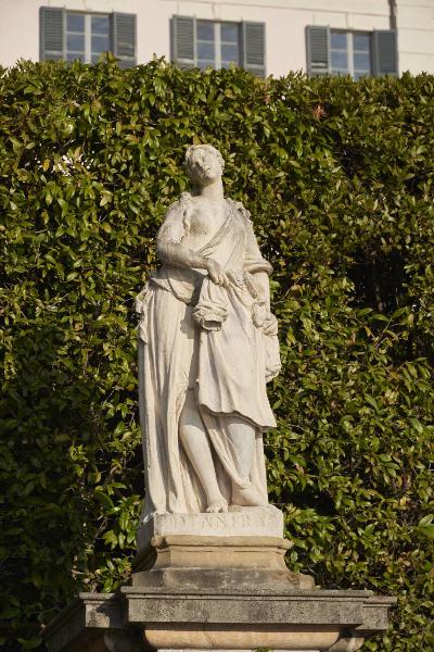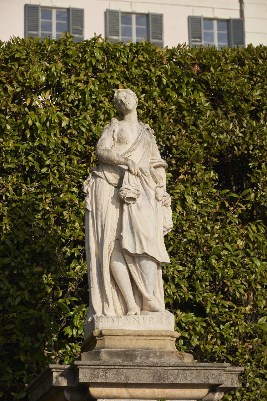 - NOTIZIE STORICO CRITICHE Si tratta di una delle dodici sculture che ornano la balaustra d'ingresso della villa che risultano documentate già nel XVIII secolo, come attestano le incisioni pubblicate da Marc' Antonio Dal Re nel volume "Ville di Delizia" (1743). Tuttavia, la resa grafica delle stampe non consente un'identificazione certa e inequivocabile con le statue attualmente in loco (Zanuso 2019). Per caratteri stilistici, le opere sono attribuibili allo scultore padovano Antonio Bonazza, assistito dalla sua bottega. L'iscrizione in lettere capitali incisa sul basamento consente di identificarla con "Deianira". Questa figura rientra nelle rappresentazioni mitologiche presenti nella serie (Zanuso 2019).