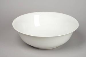 Catino circolare con un forte anello d'appoggio e l'orlo estroflesso. La parete spessa bianca è solo rivestita dalla vernice liscia vetrosa senza decorazioni nè plastiche nè pittoriche.
