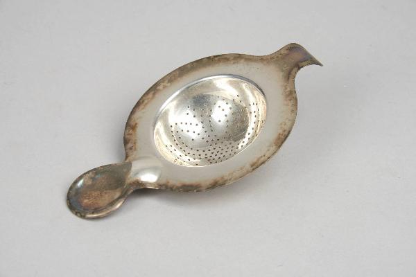 Colino da thè circolare con manico e sporgenza per l'appoggio alla tazza.