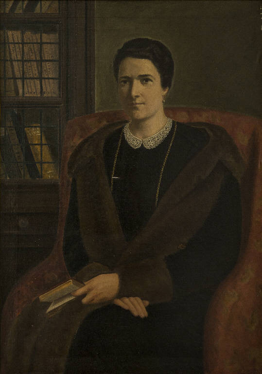 - NOTIZIE STORICO CRITICHE Il dipinto raffigura Angelina Ambrosi (1871-1943), vedova Grasseni, benefattrice del pio luogo Casa di Dio che, per mezzo del testamento olografo del 4 dicembre 1940, lasciò una significativa eredità costituita da beni mobili e immobili del valore di 250 mila lire.