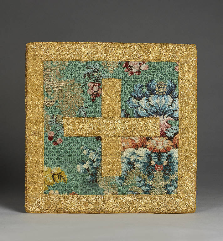 - NOTIZIE STORICO CRITICHE Il parato, nel suo insieme di pianeta, stola, manipolo, borsa, non è documentato; il colore verde ne indica un uso liturgico quotidiano che rende plausibile l'ipotesi di un reimpiego del tessuto probabilmente proveniente da un abito civile.