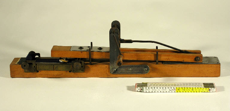 L'apparecchio è costituito da una base in legno con unastruttura in ottone per il posizionamento del tessuto da esaminare: una finestra e due rullini per l'avvolgimento del campione. Una manovella aziona un eccentrico che trasmette il suo movimento di va e vieni alla parte superiore dello strumento, che porta un tampone foderato di tessuto bianco.