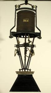 L'apparecchio è costituito da un supporto in ferro che porta, incernierata e basculante, la lampada. Questa è formata da: un corpo centrale contenente un "raddrizzatore" che trasforma in continua la corrente alternata proveniente dalla rete elettrica; una sottostante struttura che porta i tre "carboni" e una vite centrale per la regolazione della loro posizione; un paralume quadrangolare svasato per convogliare e schermare la luce stessa, che si produce nel punto dove le punte dei tre carboni arrivano a toccarsi. Etichetta metallica: "V. Petroli - Milano - Via G. Sirtori 16 - Mod.: TG/30 - N°: 3150 - V.: 32 - A: 30 - Carb mm 9 x 250 A (?) ramati base"