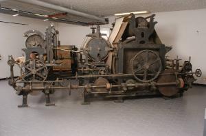 L'oggetto è una macchina di appretto a feltro continuo. E' formata da due corpi in ghisa, collegati fra loro dalle trasmissioni (lungo il lato destro) e dall'apparato idraulico di riscaldamento a vapore (lungo il lato sinistro). Il primo corpo in ghisa porta in alto un cilindro riscaldatore di primo asciugamento, poi un foulard apprettatore (due cilindri paralleli, sotto cui si trova la "foularda" che contiene l'appretto). Il secondo corpo porta un cilindro con funzione di estensore a cinghia e un grande tamburo asciugatore con feltro continuo, sovrastato da un piccolo tamburo asciugatore del feltro. Il movimento dell'albero è trasmesso alle parti della macchina in tre modi: tramite la frizione di una puleggia piana calettata sull'albero contro un disco ruvido; tramite una puleggia dentata che ingrana su una vite senza fine (come nel caso del tamburo di asciugamento); tramite una coppia di ruote dentate coniche. Nell'incavo alla testa del cilindro di presciugamento è presente una piastra di forma ovale, in ottone, con "inserti" in rame: a sinistra "Press prova AT 4/5" e sotto "N.0629" "1932"; a destra "Press esercizio AT 3" e sotto "CFL - Como"; nel centro un inserto circolare in rame con uno stemma,un grande "3" centrale e "1295 CO" e "23-5-1932". Fusione sul montante del tamburo di asciugamento "Cairoli - Fontana - Lanfranconi - Como"