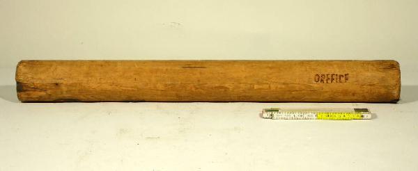 Cilindro in legno, con canale centrale. Punzonatura "OREFICE", nome dell'azienda proprietaria