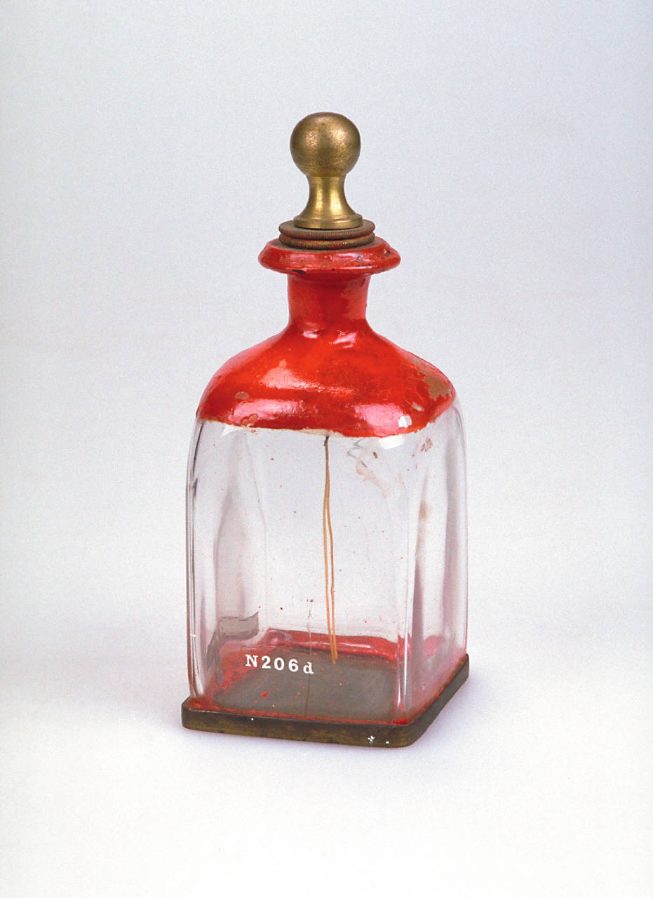 Lo strumento è sostanzialmente un elettroscopio a pendolini a midollo di sambuco, con un piattello metallico applicato al posto del cappelletto superiore dell'elettroscopio. Sulle pareti a fianco dei pendolini sono applicate due laminette conduttrici che scendono fino al fondo metallico dello strumento. La parte superiore della bottiglietta di vetro è verniciata con ceralacca. Lo strumento prevedeva la presenza di un piattello mobile superiore munito di manico isolante.