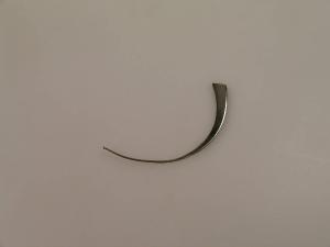 Lama ricurva in acciaio, tagliente lungo il lato concavo, la cui punta si trasforma in uno specillo.
