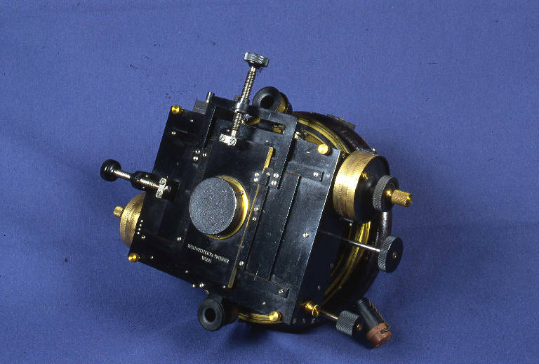Lo strumento fu ordinato da Giovanni Celoria (1842-1920) alla fine del 1909 ed arrivò a Milano nel 1911.\nCi si proponeva di effettuare con esso delle misure sui pianetini applicandolo al telescopio Merz-Repsold (si veda la relativa scheda).\nJohann Palisa (1848-1925) aveva intrapreso da qualche anno una ricerca sistematica di nuovi pianetini, con molto successo, riuscendo a scoprirne nel corso della sua vita ben 121. La tecnica usata consisteva nel confrontare al telescopio zone celesti site lungo l'eclittica con le corrispondenti mappe. In assenza di carte adatte occorreva tracciarle misurando al micrometro le posizioni relative delle stelle. \nI micrometri filari di Merz (si vedono le relative schede) non erano adatti a questo lavoro poiché avevano sia una struttura meccanica sia un corredo di oculari a forte ingrandimento e piccolo campo, inadatti allo scopo. Pertanto Palisa progettò e fece costruire un micrometro di caratteristiche adatte a questo particolare impiego. \nPochi anni dopo la tecnica visuale di ricerca di pianetini venne tuttavia completamente sostituita da quella fotografica.\nL'esemplare acquistato da Brera venne costruito a Vienna sotto la supervisione di Palisa il quale istruì Luigi Gabba al suo impiego. Il micrometro poteva essere applicato al Merz-Repsold mediante una flangia a baionetta. \nIl cerchio di posizione è fisso alla flangia, e quindi al telescopio. \nIl cerchio ha una gradazione in argento suddivisa in intervalli di 20' con indicazioni numeriche ogni 10 gradi. L'angolo di posizione viene letto per mezzo di microscopi su due noni opposti fissati alla parte mobile del micrometro; ciascun nonio permette di leggere 1'.\nLa parte mobile del micrometro può ruotare liberamente in un piano perpendicolare all'asse ottico del telescopio. \nSerrando una vite di blocco si può azionare un movimento fine di rotazione, ottenuto per mezzo di una vite senza fine che ingrana su un ingranaggio elicoidale solidale alla parte mobile del micrometro.\nLa parte mobile che è costituita da una scatola metallica che contiene cinque fili fissi tra loro paralleli, può essere anche spostata trasversalmente rispetto all'asse ottico per mezzo di una lunga vite. Ruotato il micrometro in modo che i fili siano disposti parallelamente ai circoli orari celesti è possibile determinare la differenza di ascensione retta di due astri cronometrando i loro passaggi ai fili. Perpendicolari a questi fili vi è poi un filo mobile, con vite micrometrica e tamburo graduato, col quale si può misurare la differenza di declinazione di due astri. Vi sono inoltre quattro fili, paralleli tra loro ed al filo mobile, che si possono spostare tutti insieme mediante una seconda vite micrometrica. A lato della scatola sporgono i tamburi delle due viti che spostano le slitte dei fili mobili; ciascuna testa consiste di due cilindri concentrici divisi in 100 intervalli: un giro completo di un cilindro determina l'avanzamento di una divisione dell'altro.\nIl reticolato formato dai due gruppi di cinque fili serviva da riferimento nella stesura della mappa celeste.\nSulla faccia anteriore della scatola si trova il portaoculare, portato da due slitte mosse da due viti lungo due direzioni fra loro ortogonali, in modo da render possibile una rapida ispezione di un'ampia zona celeste, grazie anche agli oculari a debole ingrandimento, inferiore ai 200x, aventi un campo di circa 20', di cui lo strumento era dotato, ed ora dispersi. \nLa faccia anteriore reca inoltre l'iscrizione, accanto al portaoculare, WELHARTICKY & PACHNER, WIEN.\n\n(continua nella scheda catalografica completa in allegato)
