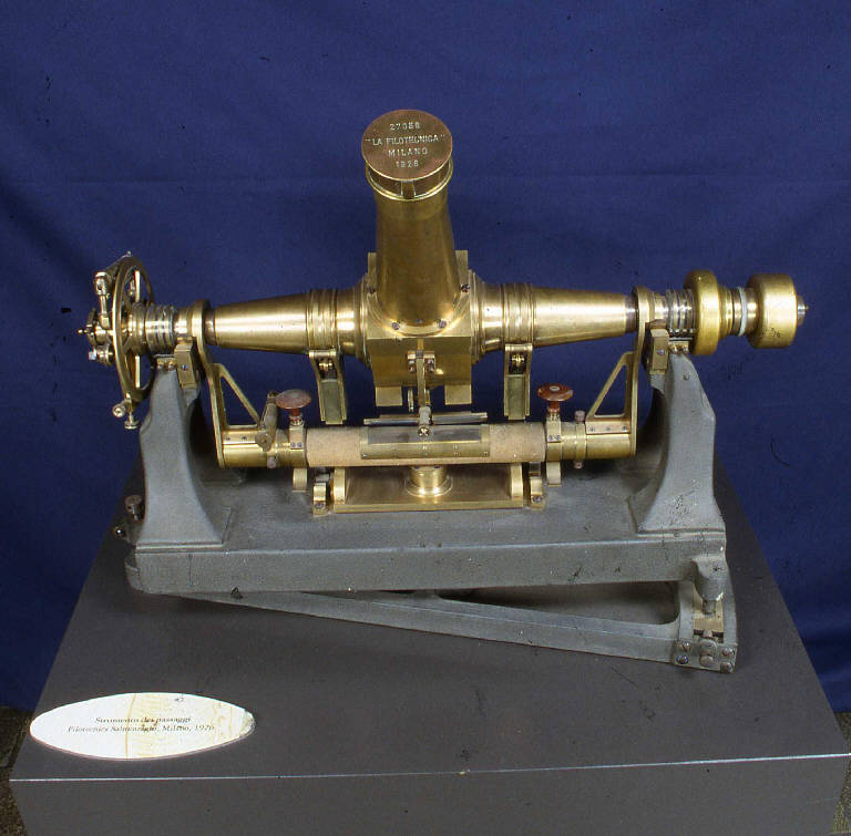 Giunto all'Osservatorio nel 1927, venne posto presso la succursale di Merate, nel cupolino degli strumenti dei passaggi.\nL'acquisto di questo strumento può essere stato dettato da ragioni extrascientifiche: quattro anni prima, infatti, vi era stata un'aspra polemica tra il direttore dell'Osservatorio di Brera, Emilio Bianchi (1875-1941), e Angelo Salmoiraghi -della omonima Filotecnica fondata nel 1867 da Ignazio Porro - e si può pensare che l'acquisto fosse stato un segno di riavvicinamento, spontaneo oppure frutto di pressioni da parte degli organi istituzionali, fra l'Osservatorio e il costruttore milanese. La polemica aveva riguardato gli strumenti in conto riparazioni danni di guerra ed era esplosa con una lettera aperta di Salmoiraghi - già senatore del regno - pubblicata quasi integralmente e commentata il 22 giugno 1923 su "Il Popolo d'Italia", il giornale fondato da Benito Mussolini. A questa rispose Bianchi sullo stesso giornale due giorni dopo; l'ultimo scambio di battute si ebbe il 27 giugno, sempre sulle pagine de "Il Popolo d'Italia". Salmoiraghi accusava in sostanza Bianchi di scarsa considerazione verso la sua ditta, La Filotecnica, affermando anche che il direttore non rispettava delle intese verbali che Salmoiraghi diceva di aver avuto con Giovanni Virginio Schiaparelli (1835-1910) e Giovanni Celoria (1842-1920): se fossero stati necessari nuovi strumenti per l'Osservatorio, questi sarebbero stati progettati insieme e realizzati a Milano. \nNella sua risposta Bianchi assicurò di non conoscere gli accordi di cui parlava Salmoiraghi, facendo notare che, comunque, durante la gestione dei due grandi astronomi gli strumenti più importanti, i due rifrattori, erano stati acquistati in Germania e non presso la Filotecnica. \nInoltre gli strumenti in conto danni di guerra non si dovevano pagare, e si trattava di ottimi strumenti. \nAlle argomentazioni di Bianchi, Salmoiraghi rispose con slancio patriottico, ma scarsa logica: "ella scrive che gli strumenti in conto riparazioni 'venivano gratis'. \nNo, professore: tutto ciò che si avrà in conto riparazioni è già stato pagato con denaro, sangue e lacrime!". E Bianchi replicò con un appello rivolto a Salmoiraghi: "Lasci risorgere Brera così come io ho disposto; nessuna altra via è oggi possibile; i nuovi strumenti staranno proprio a testimoniare il denaro, il sangue e le lacrime che ci sono costati e sarà testimonianza di vittoria". Salmoiraghi non si limitò comunque ad esprimere amarezza - oltre ad accuse di scarsa correttezza riguardo all'operato di Bianchi, accuse smentite con vigore, e probabilmente del tutto a ragione, dal direttore dell'Osservatorio - ma minacciò un intervento diretto: " farò opera perché per quanto fosse ancora possibile senza pregiudizio dell'interesse scientifico dell'Osservatorio sia impedita l'importazione degli strumenti tedeschi di cui si tratta". È da notare che Salmoiraghi intendeva bloccare solo gli strumenti diretti all'Osservatorio di Milano, e non quelli degli altri istituti, che erano, ancor più di quelli di Milano, di un genere prodotto dalla Filotecnica. Per spiegare questo atteggiamento si può pensare sia a precedenti contrasti dovuti ad alcune critiche rivolte da Bianchi a strumenti della Filotecnica, sia all'effetto sfavorevole sull'immagine ed il prestigio della fabbrica, se l'Osservatorio milanese non si fosse rivolto alla fabbrica di strumenti milanese per i suoi acquisti. Bianchi non sottovalutava la minaccia di impedire l'arrivo a Merate degli strumenti tedeschi. \n\n\n(continua nella scheda catalografica completa in allegato)