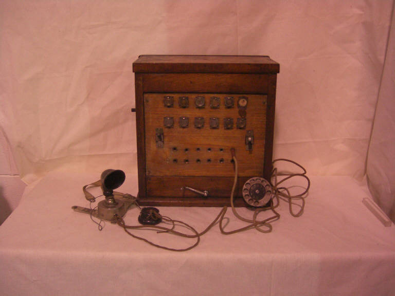 centralino a 12 linee adattato per collegamento "BCA" con microtelefono a cuffia e pettorale