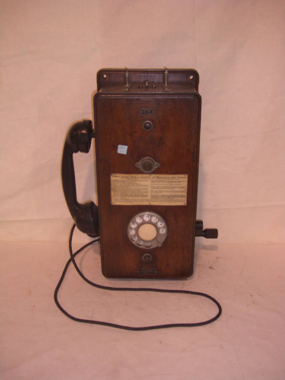 apparecchio telefonico selettivo con tipico disco combinatore a pulsante di sblocco