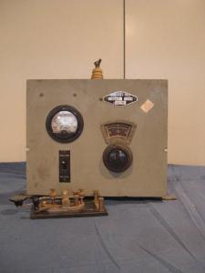 trasmettitore radiotelegrafico a scintilla strappata su onda di soccorso di 600 mt, per uso navale, completo di tasto Morse.