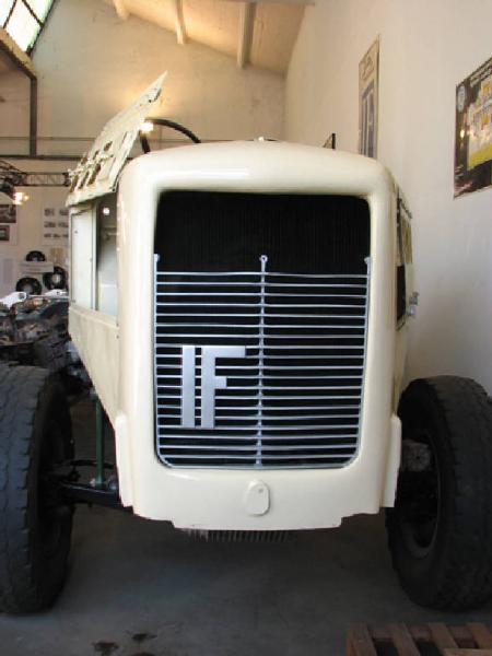 Autocarro pesante con motore a gasolio a quattro tempi ad iniezione, con 6 cilindri in linea (cilindrata totale 7300cc). Posto di guida a destra.\nAttualmente è presente solo l'autotelaio con il motore nella parte anteriore, mentre la cabina, di tipo arretrato, e il cassone sono in attesa di restauro.\nNella parte anteriore è inserito il motore. Nella cabina di guida (mancante della cabina vera e propria) si hanno il volante e i relativi dispositivi di trasmisione dle moto sotto alla cabina e al cassone) il cruscotto con indicatore di velocità e contachilometri, dell'olio, dell'acqua, ecc. Sotto al telaio dove si posizionano i sedili (mancanti) è inserito il serbatoio del gasolio.\nSegue il telaio con sotto gli organi di trasmissione. Anteriormente si hanno due ruote, posteriormente due per parte (gomme non originali).\nCaratteristiche tecniche:\nPasso 4,10 m\nCarreggiata anteriore, m 1,78 \nCarreggiata posteriore, m 1,77\nRaggio di volta, m 7,00\nRapporto di compressione 1:16\nPotenza massima CV 95\nRegime di giri massimi al minuto 1850\nPortata massima, kg 6500\nPendenza massima superabile 28 %\nVelocità massima km/h 45\nAutonomia km 370 (125 litri di portata del serbatoio)