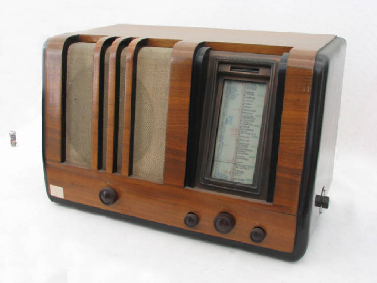 Apparecchio radio da tavolo in legno di forma parallellepipeda, a sviluppo orizzontale e di grandi dimensioni.\nNella parte sinistra della parete frontale troviamo l'altoparlante elettrodinamico (bobina mobile e bobina di eccitazione/di campo), nella parte destra è inserito l'indicatore visivo di sintonia al neon.\nSull'indicatore di sintonia sono presenti i nomi delle località e scale graduate con indicate le lunghezze d'onda in metri per onde cortissime, corte, medie, lunghe.\nNella parte bassa, in legno, sono inseriti i commutatori per l'accensione e la regolazione del volume, la selezione della frequenza desiderata.\nLateralmente è presente un deviatore che consente di selezionare la tipologia di onde (cortissime, corte, medie. lunghe).\nSulla parete posteriore sono inseriti due connettori elettrici a boccola.\nDal retro fuoriesce un cavo elettrico per il collegamento alla rete, non originale.\nAll'interno sono visibili le 5 valvole EF9, il circuito supereterodina e le bobine dell' altoparlante.
