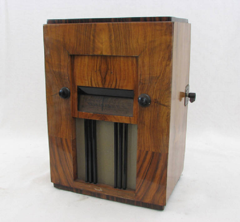Apparecchio radio da tavolo in legno di forma parallellepipeda, a sviluppo verticale e di grandi dimensioni.\nAl centro della parete frontale troviamo l'indicatore di sintonia con le scale graduate con le indicazioni delle lunghezze d'onda in metri per le onde corte, medie e lunghe. Ai lati dell'indicatore si hanno due commutatori rotanti per l'accensione e la regolazione del volume e per la selezione della frequenza desiderata.\nLateralmente è presente un deviatore che consente di selezionare la tipologia di onde (corte, medie, lunghe).\nNella parte bassa della parete frontale si inserisce l'altoparlante Magnavox. Nella parte alta sono presenti due piccoli fori dove era probabilmente collocata, mediante viti, la targhetta col marchio Phonola.\nAprendo la parete posteriore è visibile l'interno dell'apparecchio contenente gli alloggi per cinque valvole, il circuito supereterodina e l' altoparlante.