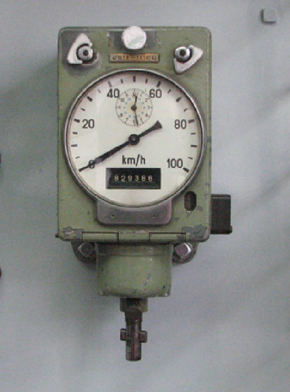 scatola metallica con quadrante indicatore della velocità con scala da 1 a 100 Km/ora ; orologio; finestra con totalizzatore dei Km percorsi ed indicatore di inizio fine zona..La zona,rullo di carta speciale con pennino scrivente ,era sistemata all'interno della scatola ribaltando il quadrante.Due piccole impugnature sul fronte superiore in lamiera permettevano di regolare e caricare l'orologio.Sul fondo fuoriusciva un 'astina a sezione quadra per la trasmissione del moto.