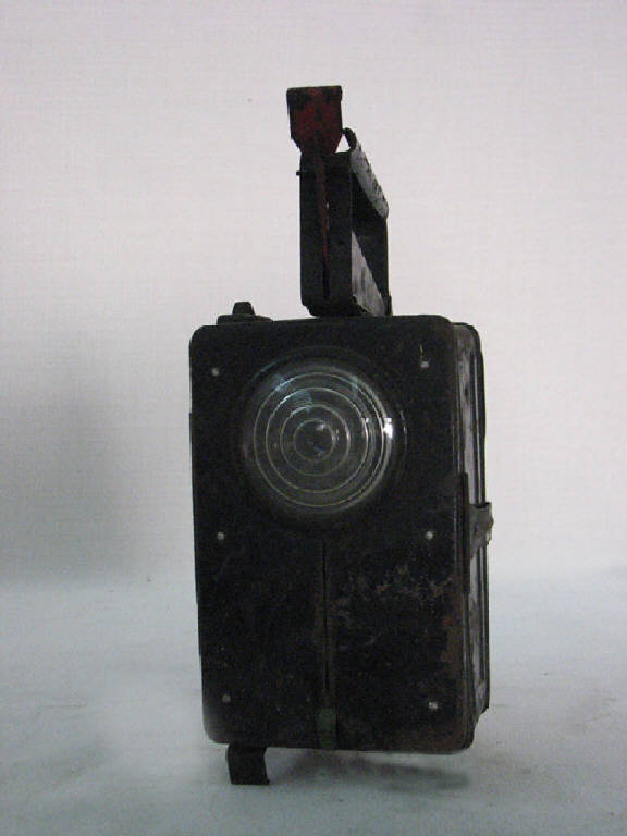 scatola in lamiera robusta con oblò in vetro sul davanti e manico ad U capovolta in alto.Apribile a libro da un fianco.All'interno sede per batterie e cavi per alimentare un portalampade montato sulla paretina di fondo dell'oblò.Un interruttore è montato sul bordo superiore della scatola ma una presa a molla sul manico consente la chiusura del circuito durante il suo innesto nell'apposita sede in coda al treno.Su una scanalatura della faccia anteriore scorre un nottolino che muove un vetro colorato ( rosso o verde ) posizionandolo tra il vetro dell'oblò e la lampadina, cambiando di conseguenza il colore della luce che si vuole segnalare.