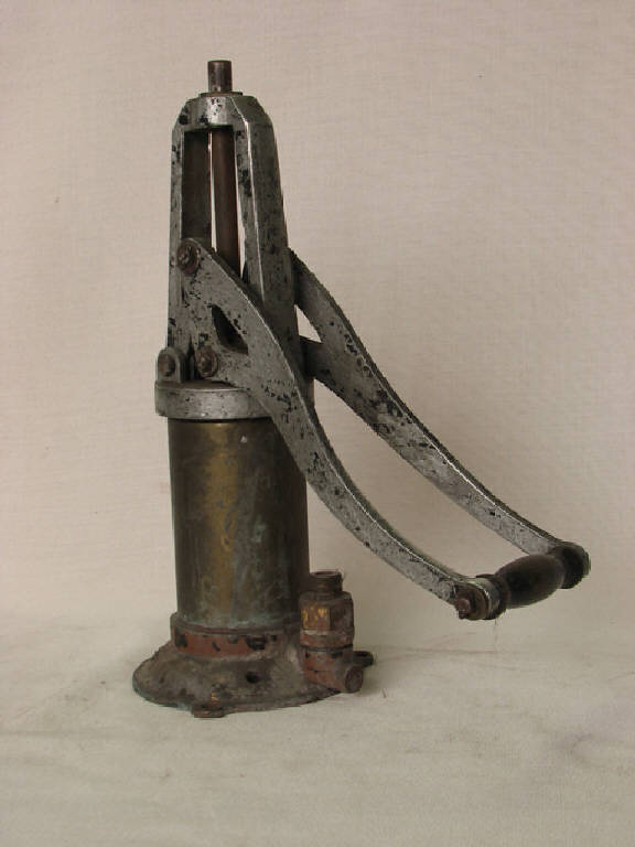 pompa a mano a forma cilindrica con stantuffo manovrato da una manovella