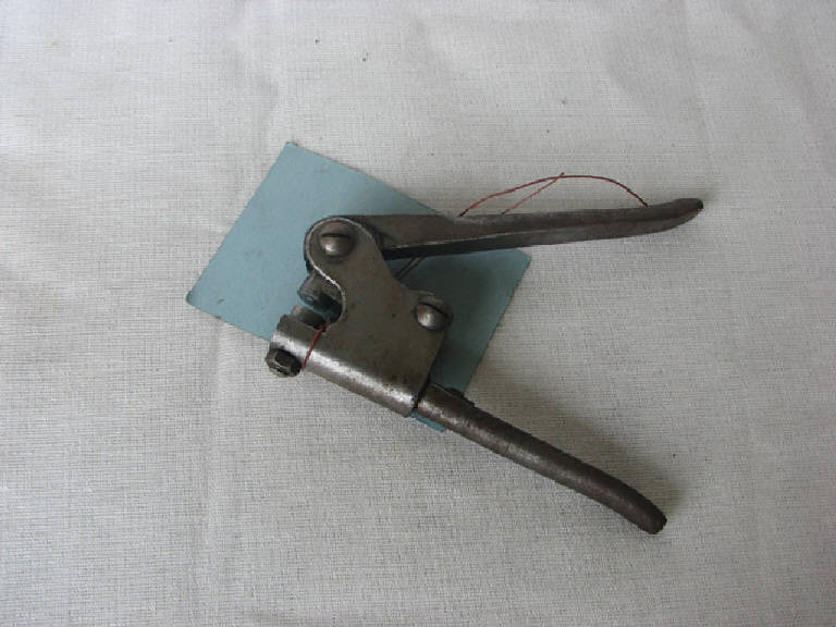 punzone a pinza con impugnatura in acciaio da operaio Impianti elettrici.Con matrice riportante la sigla FNM Officine elettriche Milano