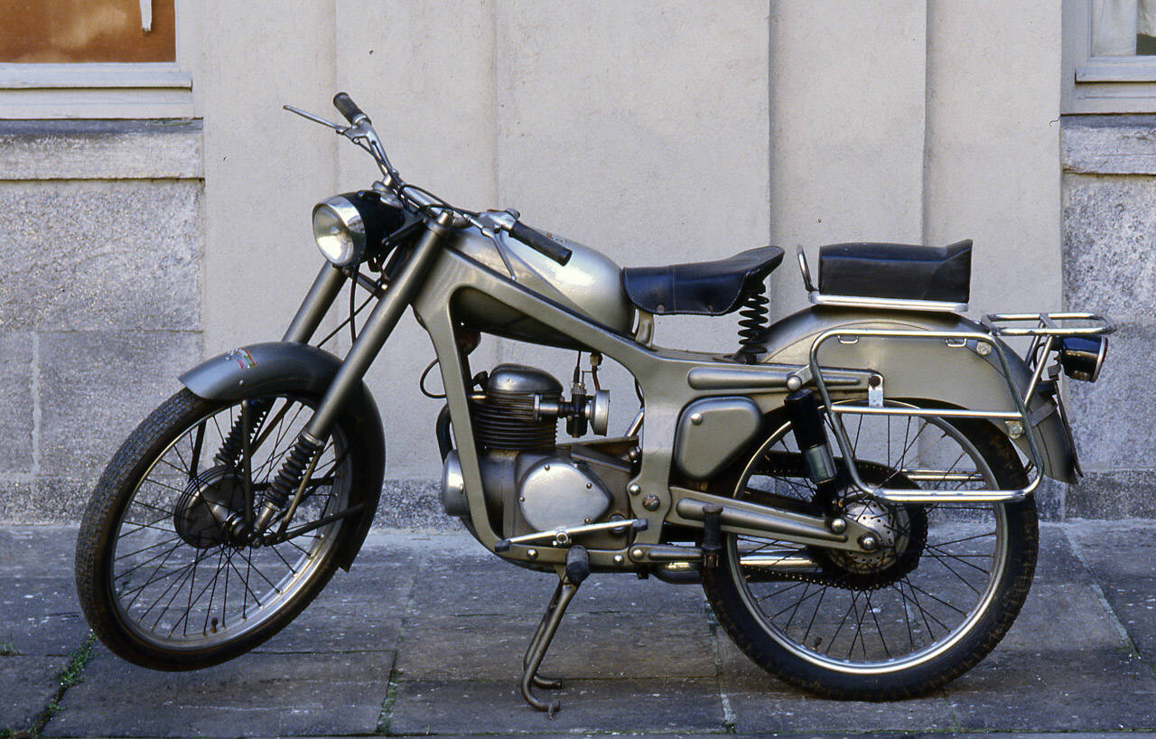 Motocicletta con telaio in lamiera stampata, parafanghi e serbatoio verniciati di grigio metallizzato. Al centro del telaio è montato un motore monocilindrico verticale a quattro tempi, con distribuzione a valvole in testa comandate da camma in testa; il tubo di scarico è posto sul fianco destro del veicolo. Al di sopra del motore è collocato il serbatoio. Il cambio a quattro velocità è comandato dal pedale a bilanciere posto sul lato sinistro. La motocicletta è provvista di fanalino di coda e fanale anteriore, sul quale è sistemato il quadrante del contachilometri e del tachimetro, con scala numerata da 0 a 120 km/h. La forcella anteriore è dotata di sospensioni elastiche, mentre il forcellone presenta ammortizzatori oleodinamici. La motocicletta è equipaggiata con una doppia sella.