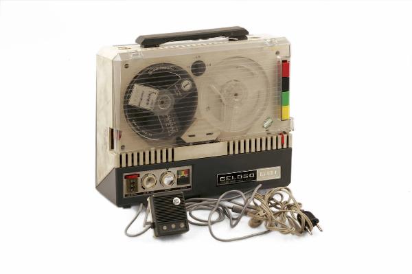 Magnetofono costituito da una struttura in plastica bianca e grigia, che ospita all'interno le componenti elettroniche. La parte anteriore è occupata da una mascherina in metallo traforato, che copre l'altoparlante all'interno. Le bobine sono collocate nella parte superiore dell'apparecchio, riparate da un coperchio in plastica trasparente. Sul lato superiore sono inoltre collocati tutti i comandi del magnetofono: sul bordo destro si trovano quattro pulsanti in plastica di colore giallo, verde, nero e rosse, rispettivamente per riavvolgimento, riproduzione, arresto e registrazione del nastro; nella parte in basso a sinistra sono posti due selettori a manopola per il tono e il volume, un contatore azzerabile del nastro a tre giri e un indicatore elettrodinamico del livello di registrazione; sul bordo sinistro è infine collocata la levetta in plastica rossa per l'avanzamento rapido e il caricamento del nastro. Tra le due bobine si trova il commutatore per il cambio di velocità del nastro a 9,5 - 4,75 - 2,38 cm/sec. Sul lato posteriore dell'apparecchio si trovano la maniglia in plastica grigia per gli spostamenti, tre boccole per il collegamento dell'amplificatore/cuffie, dell'altoparlante e del microfono, un supporto bipolare per l'allacciamento alla rete e infine una presa a cinque poli per l'attacco dei comandi a distanza. Sul fondo dell'apparecchio, infine, si trova un vano contenitore per il microfono, mentre i cavi di alimentazione possono essere costuditi in un apposito scomparto della valigetta; il magnetofono infatti è accessoriato con una valigetta rigida in cartone e legno, rivestita in plastica. L'apparecchio inoltre è corredato con un cavo elettrico per l'alimentazione e un microfono dinamico a capsula, in plastica bianca e grigia.