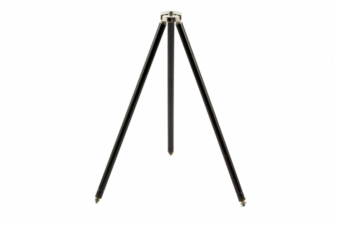 Questo cavalletto per apparecchi fotografici di piccole e medie dimensioni è costituito da tre aste in metallo con piedini appuntini incernierate, all'altra estremità, ad un disco in metallo.\nAl centro del disco in metallo è inserita una vite per l'inserzione dell'apparecchio fotografico.\nLe aste del cavalletto, una volta aperte nella posizione desiderata, potevano essre fissate stringendo tre viti poste in corrispondenza dei punti di inserzione sul disco.