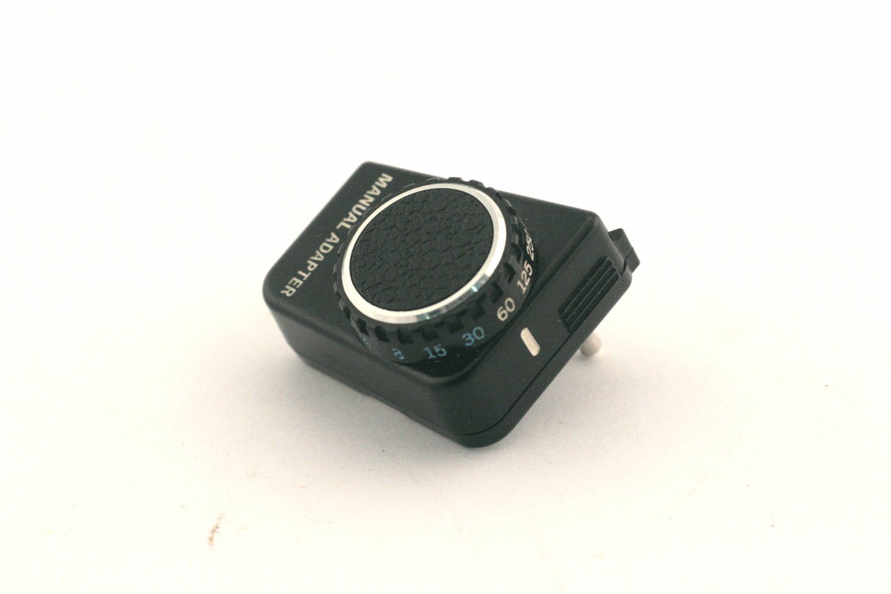 Dispositivo di piccole dimensioni costituito da un piccolo parallelepipedo in materiale plastico con connettore elettrico per l'inserimento nell'apposito foro dell'apparecchio fotografico.\nUna rotella permette di selezionare la velocità di scatto da 1/1000 di sec a 1 sec.
