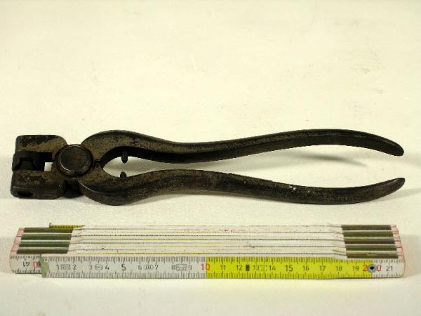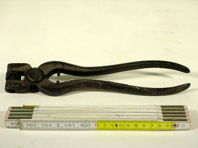 Lo strumento è costituito da una sorta di pinza formata da due manici che azionano un becco dotato di due piastre circolari complementari le quali, schiacciando le due parti di un frapposto sigillo, ne permettono la chiusura attorno alle estremità della reggia o della corda di confezione del pacco